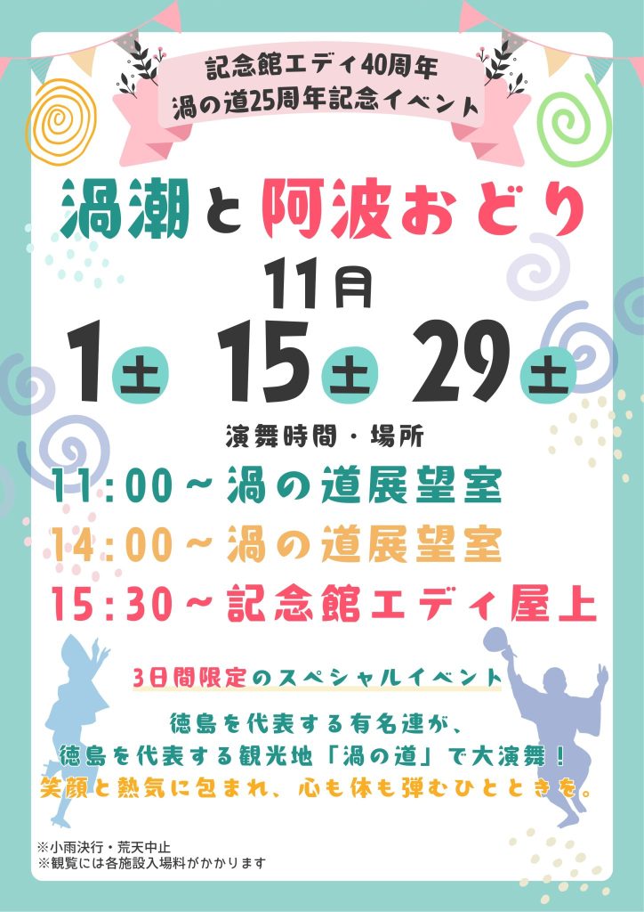 Tokushima’s renowned Ren (Awa Odori Dance Group) performs spectacular dances on the Eddy Memorial Hall rooftop and Uzu-no-Michi!