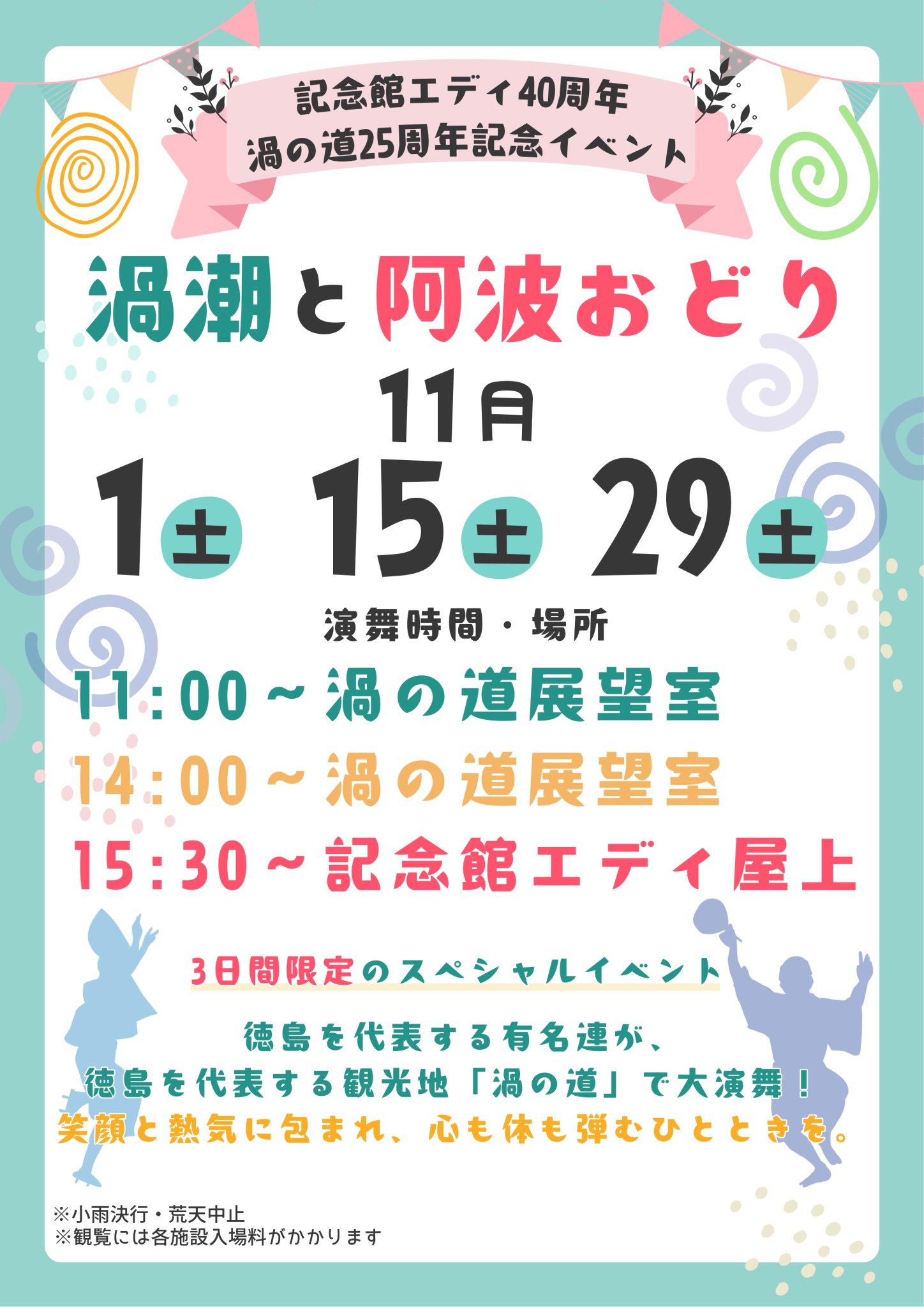 Tokushima’s renowned Ren (Awa Odori Dance Group) performs spectacular dances on the Eddy Memorial Hall rooftop and Uzu-no-Michi!