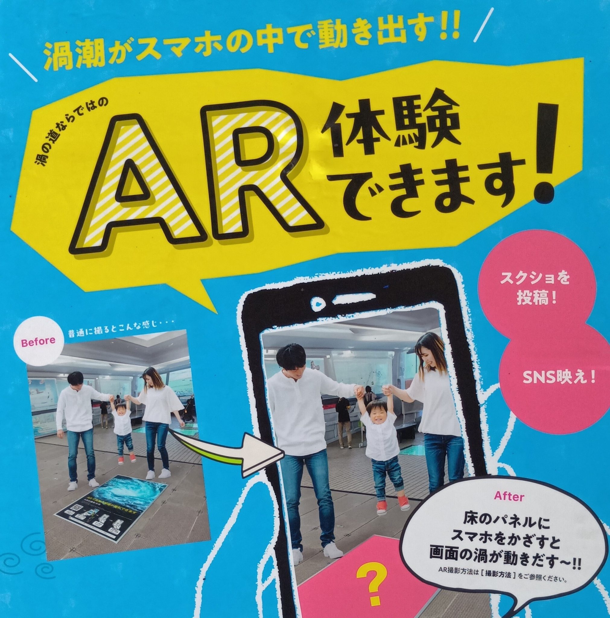 AR体験できます!渦の道展望室にARを設置。お手持ちのスマートフォンで動く渦潮ARをお楽しみいただけます。