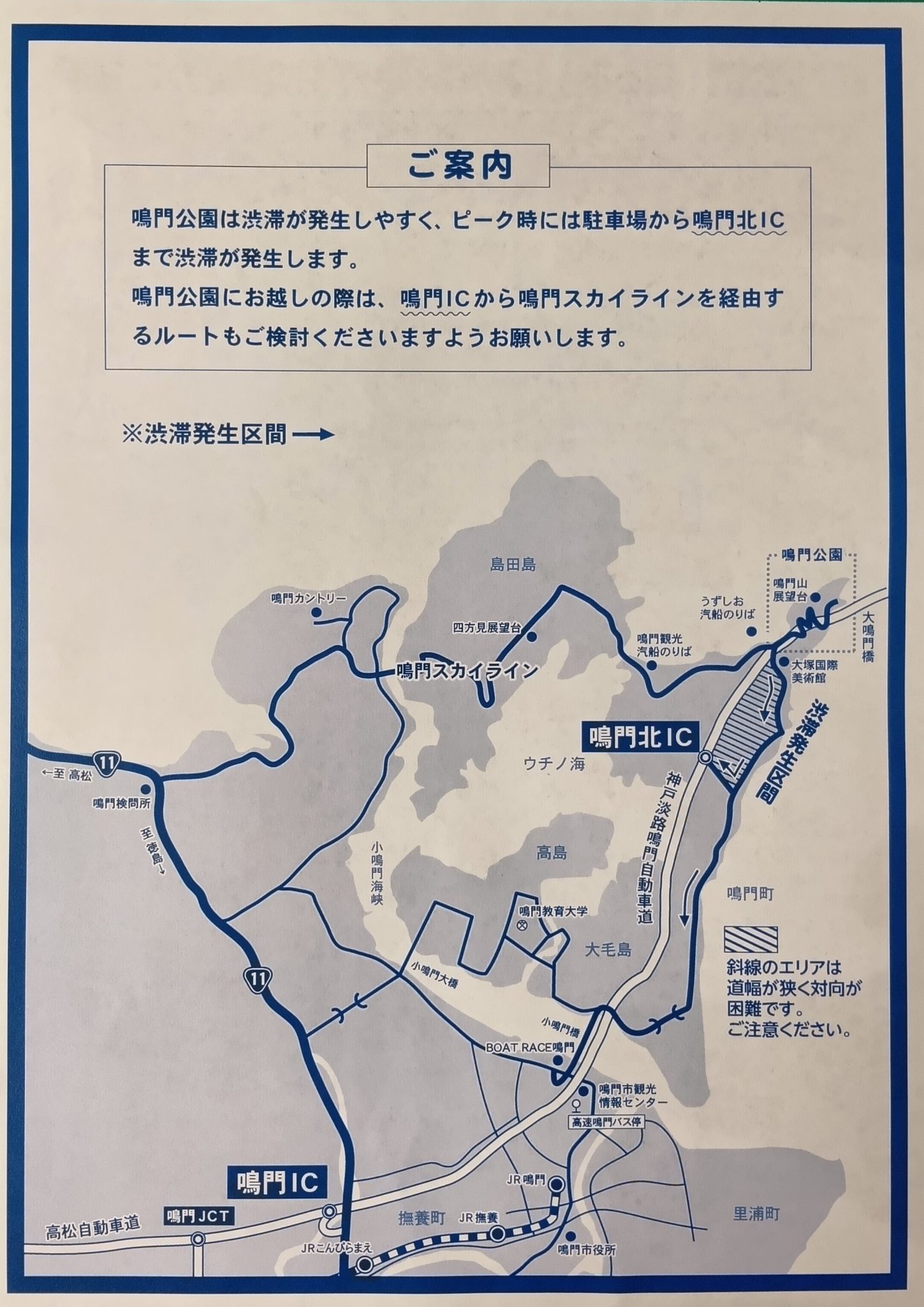 また、5/3から5/5の3日間は、交通の集中により渋滞が鳴門北IC付近まで延びる恐れがあります。